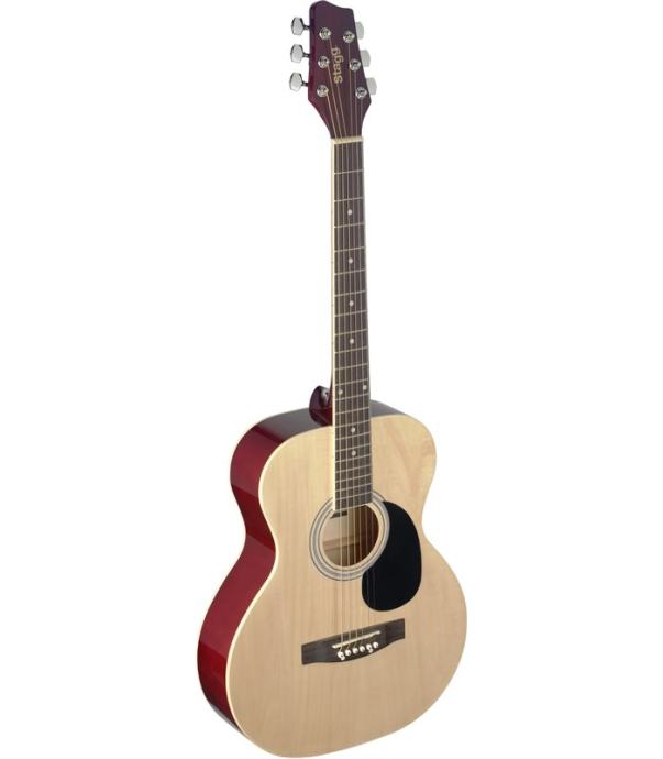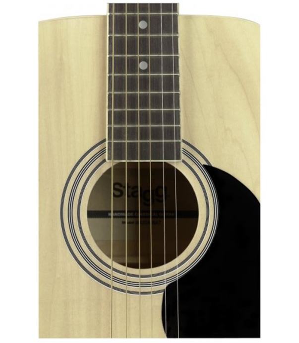 Ukoliko tražite akustičnu gitaru za početnika, ne morate tražiti dalje! Stagg SA20A akustična gitara je idealan model za početnika sa gornjom pločom od lipe, dok su bočna i zadnja stranica od nato drva. Prstohvat je od javora (pobojani na crno), boja je natural visokog sjaja. Oblik tijela je auditorum.