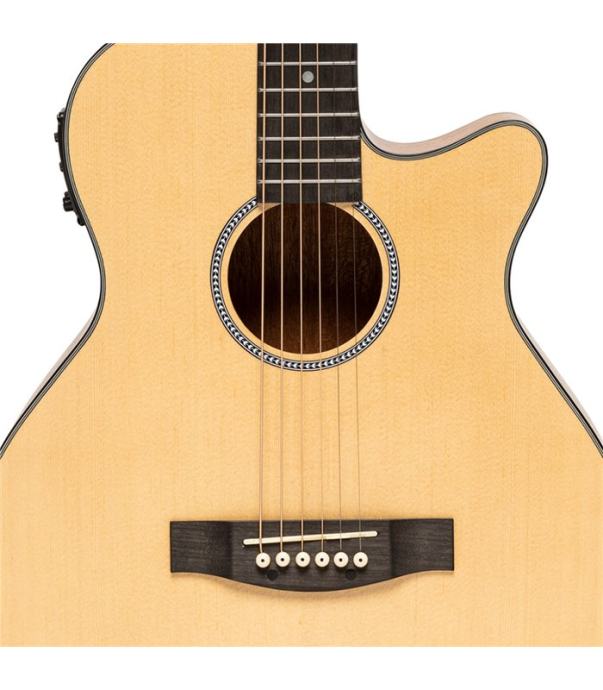 Elektro-akustična auditorium gitara sa cutaway oblikom tijela. Gornja ploča je od smreke, stražnja i bočne ploče su od Sapele drva. Vrat je Okoume a prstohvat je Blackwood. Most je od oraha. Gitara ima crni ABS binding. Elektronika uključuje transduktor ispod sedla, pretpojačalo s EQ-om - glasnoća, kontrola basa, srednjih i visokih tonova, ugrađeni kromatski štimer, fazni prekidač i indikator slabe baterije. Mašinice su lijevane, kromirane. Završna obrada gitare je natural.
