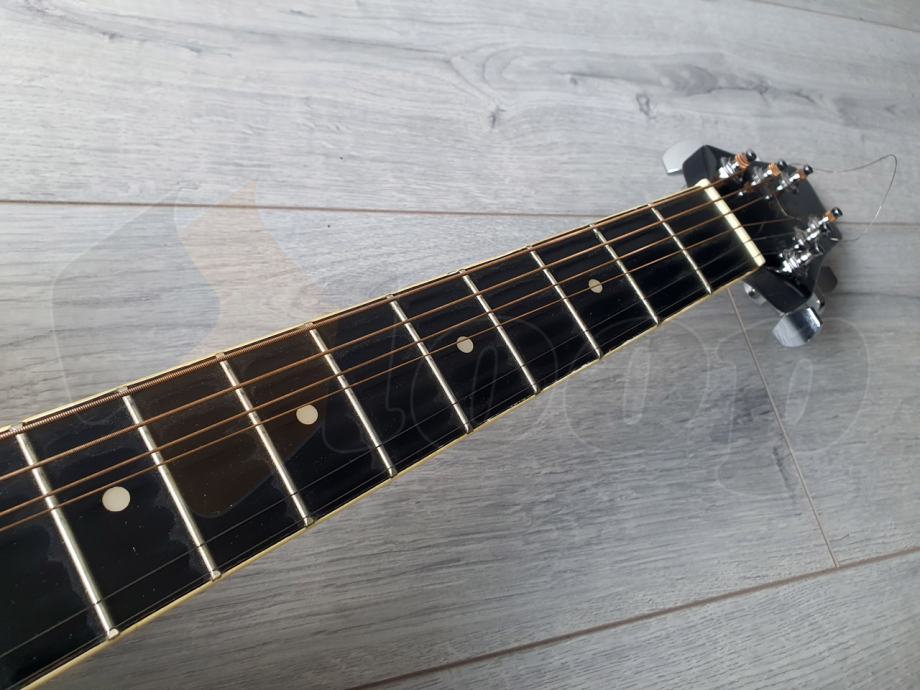 akustična gitara; ima manjih oštećenja po tijelu uslijed upotrebe, ali ništa bitno što bi utjecalo na svirljivost ili zvuk.