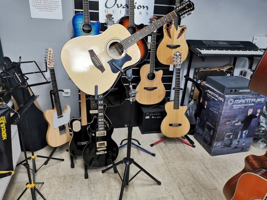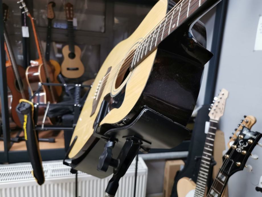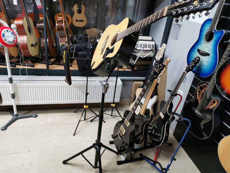 scenski stalak za akustične i elektro-akustične gitare, koji omogućava sviranje dvije gitare bez izmjene, podesiv u svim smjerovima, te po visini.