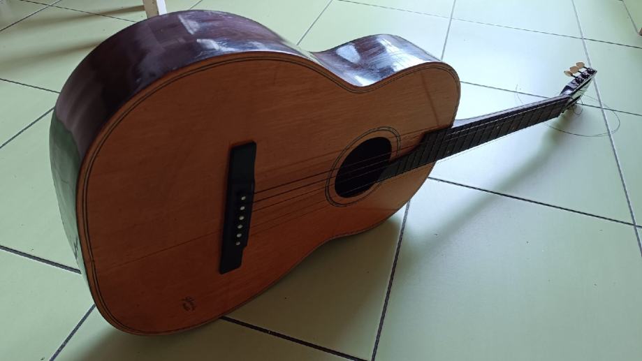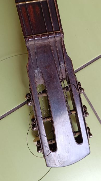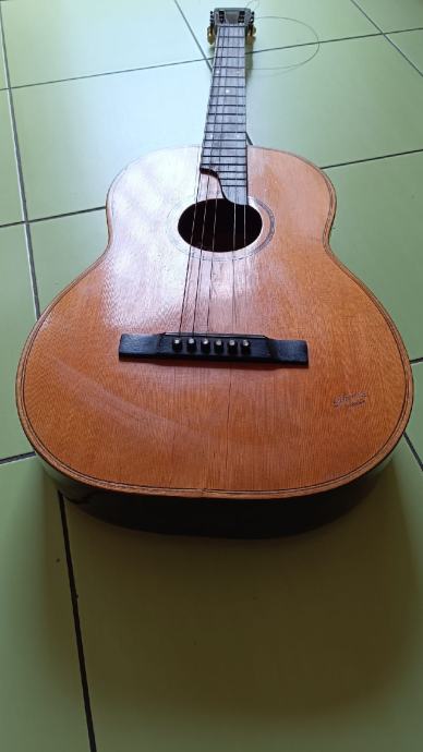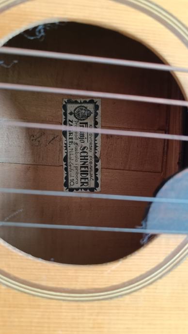 Gitara poznatog graditelja gitara i kraljevskog dobavljača muzičkih instrumenata Franje Schneidera u solidnom stanju. Gitara datira iz 20-tih godina prošlog stoljeća . Prekrasan instrument
