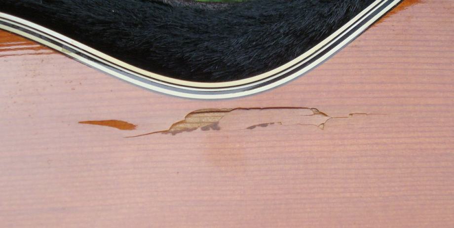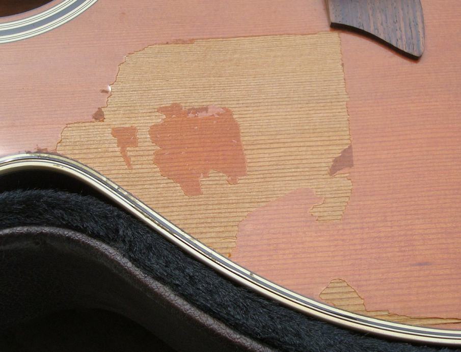 Prethodni vlasnik je ljepio nekakvu foliju po gitari, pa kad ju je htjeo opet ukloniti, folija je za sobom povukla lak...