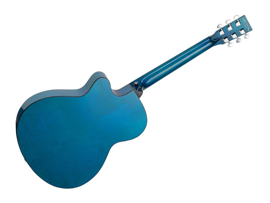 Elektro-akustična gitara s tijelom Super Folk oblika, izrađena od kombinacije egzotičnog jasena i javora, pruža iznimno uravnotežen ton s izraženom jasnoćom i toplinom. Gornja ploča od prošivenog jasena daje gitari svijetao i vibrantan tonski karakter, dok javor na leđima i bočnim stranicama dodaje dubinu i definiciju. Prstohvat i most izrađeni su od Purple Heart drveta, poznatog po svojoj izdržljivosti i glatkoj površini. Ugrađeni Tanglewood Premium Plus EQ sistem s pretpojačalom i štimerom omogućuje precizno oblikovanje zvuka, bilo na pozornici ili u studiju. Završna obrada u nijansi Through Blue Gloss dodatno ističe prirodnu ljepotu drveta i daje gitari elegantan izgled.