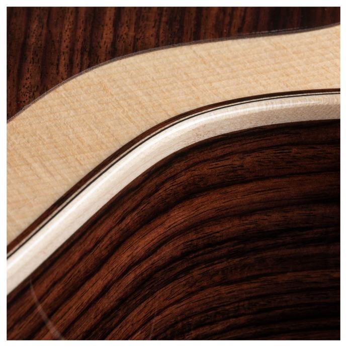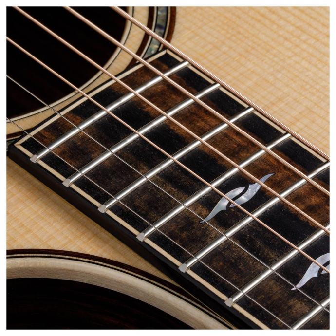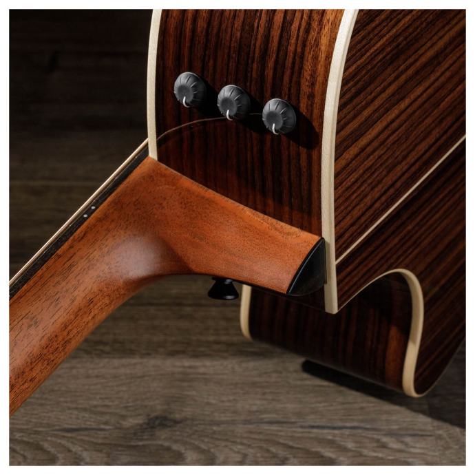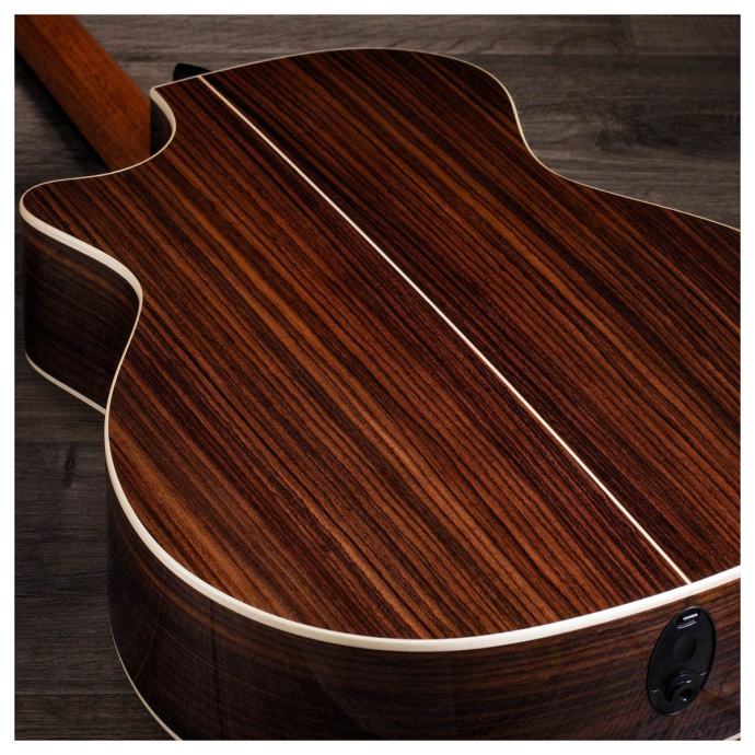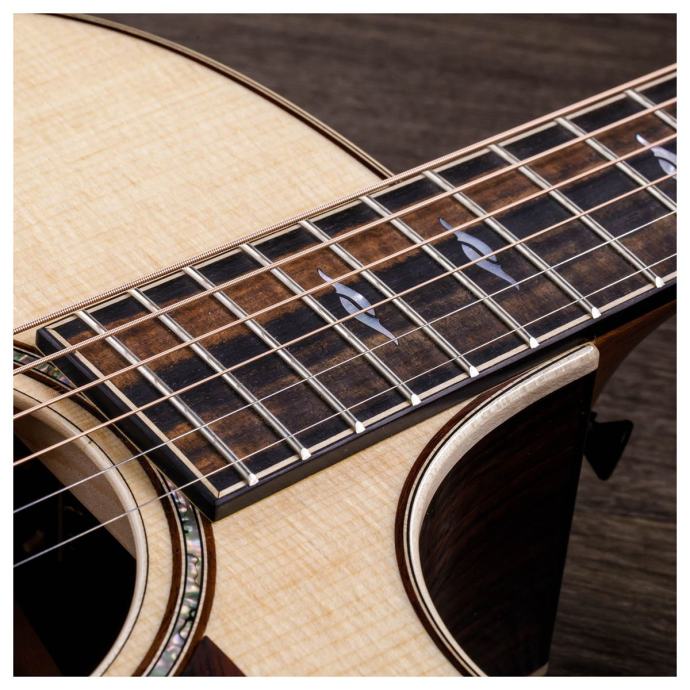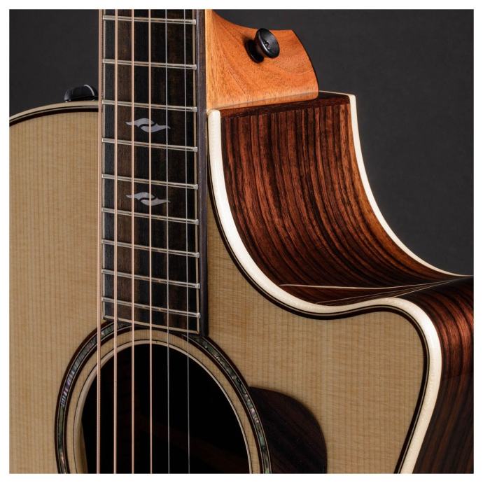 Top od Sitka smreke Sitka | Stražnja i bočna strana od indijskog palisandera | Vrat od tropskog mahagonija | West African Crelicam Ebony hvataljka | Expression System® 2 electronika | Venecijanski cutaway | Taylor Deluxe Hardshell kofer.