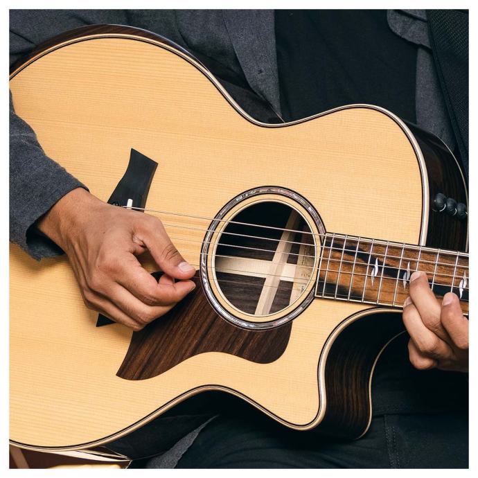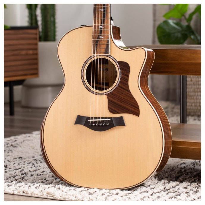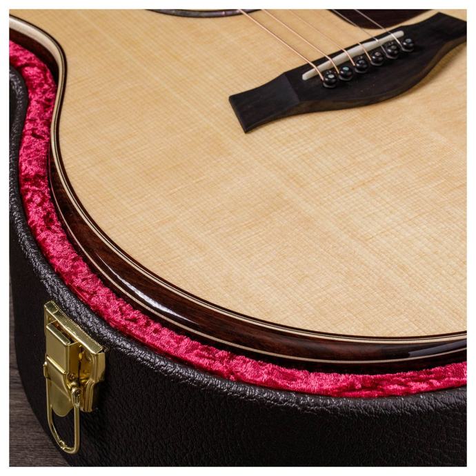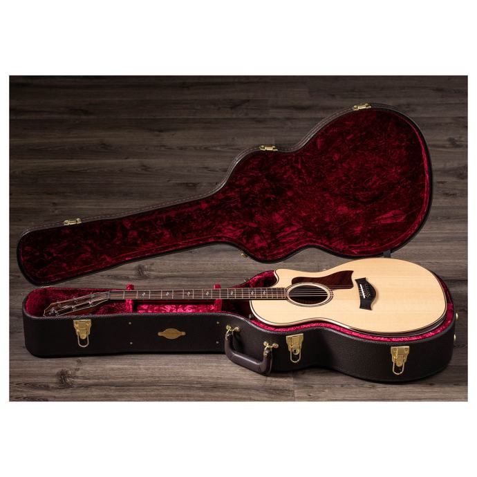 Postoji razlog zašto je 814ce model Taylorova najcjenjenija gitara: kombinacijom profinjene izrade, bogatog zvuka i umjetničke estetike, 814ce predstavlja sve ono za što se zalažemo kao proizvođači gitara. Stražnja strana te bočne strane indijskog palisandera kao i gornja ploča od sitka smreke i V-Class bracing, zajedno stvaraju bujan tonski odaziv s toplim niskim frekvencijama, čistim visokim tonovima i blago reduciranim srednjim frekvencijskim rangom, ostavljajući prostor u miksu za vokale ili druge instrumente. Ovaj električno-akustični Grand Auditorium je idealan za trzanje, delikatno prebiranje prstiju i sve ostale tehnike, može se pohvaliti svestranim karakterom koji se lijepo prenosi kroz ES2 pickup. Luksuzni kofer čuva 814ce na sigurnom gdje god da se nalazi.