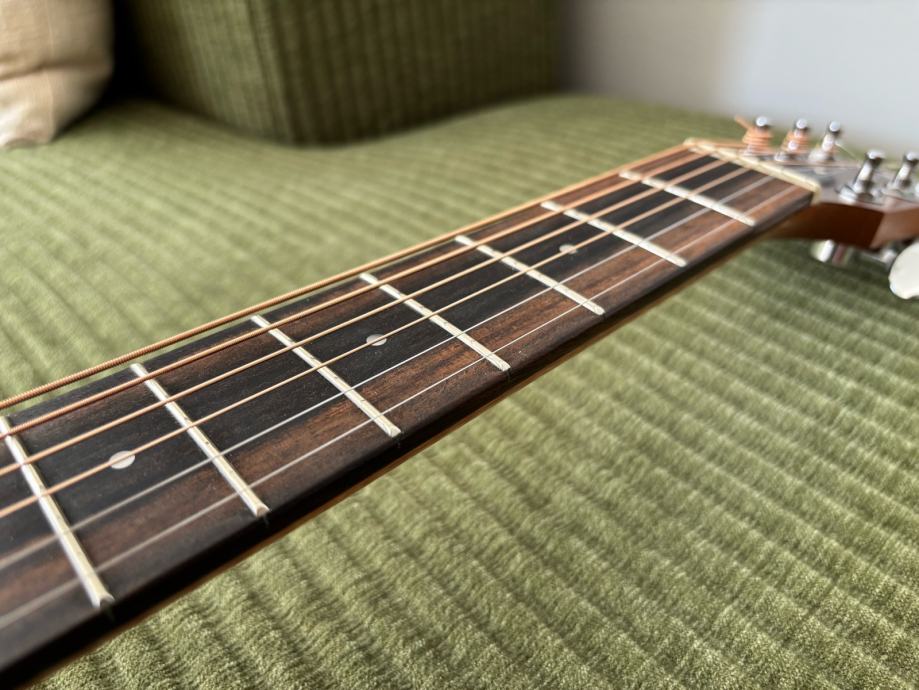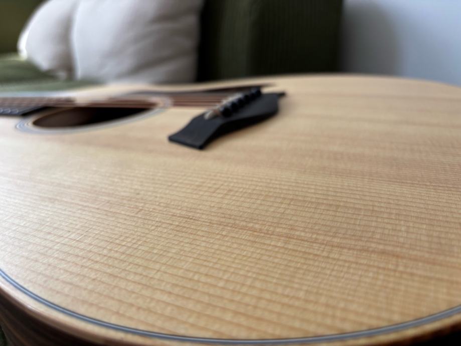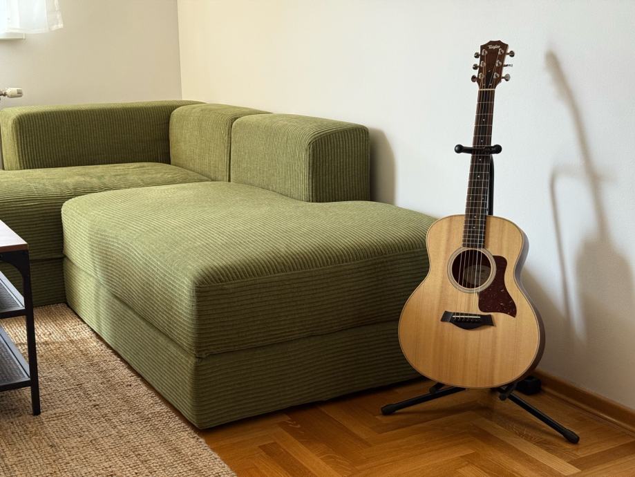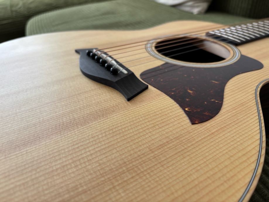 Perfektno stanje. Nema ni jednu ogrebotinu. Jako malo svirana. Dolazi s originalnom torbom. Registrirana je na Taylor stranici tako da je jos pod garancijom. Posjedujem racun i svu pripadajucu dokumentaciju.