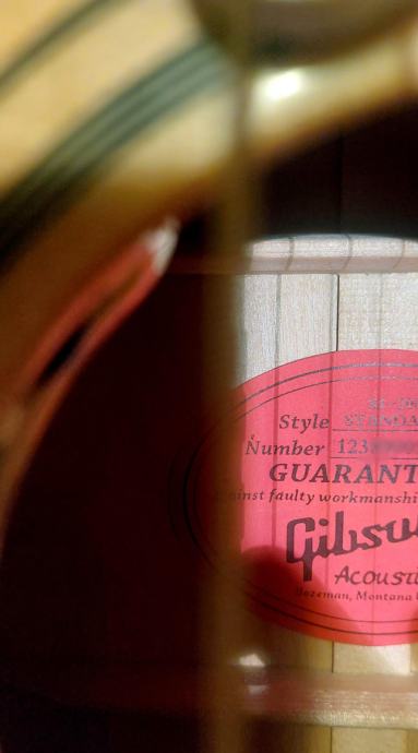 Gitara je vrhunska i apsolutno besprijekorna kopija Gibson SJ-200 Standard. Sound divan i bogat. Puno drvo. Elektro-akustična, ima unutrašnji pickup). Sve je top do najsitnijih detalja uključujući i Gibsonove mašinice. Novo. Teško je povjerovati da nije original. Cijena gitare je 1050 eura.