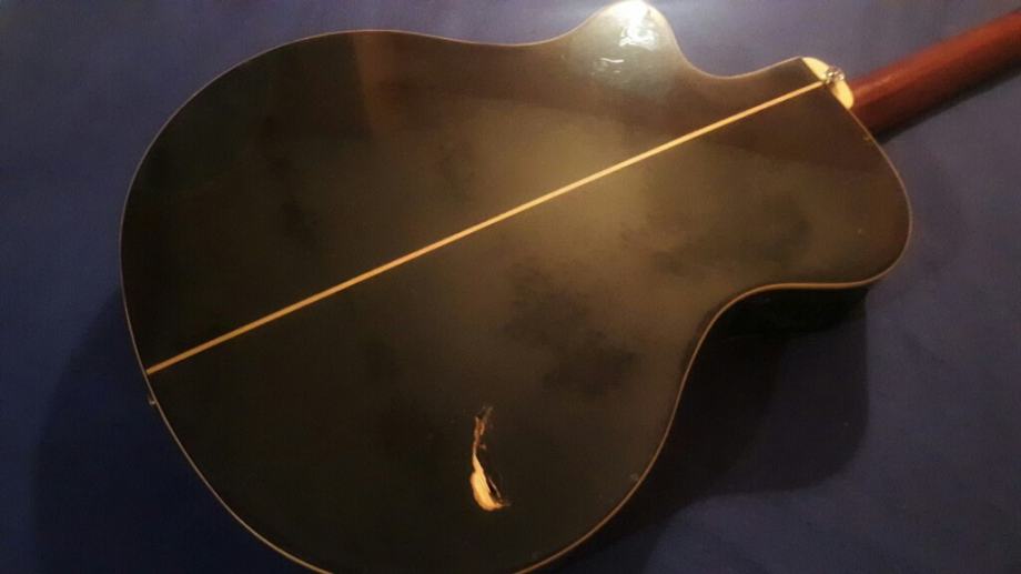 Jedina mana na gitari je što je oštećena sa stražnje strane i iz tog razloga je cijena snižena. Oštećenje ni malo ne utjeće na svirku ili zvuk gitare.