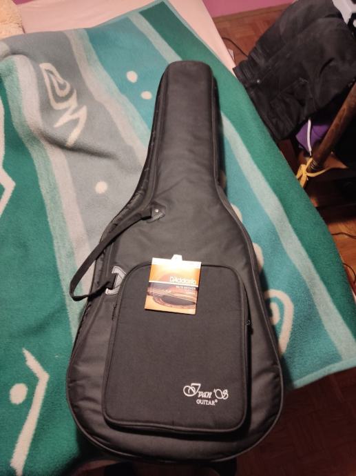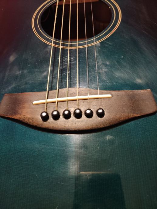 Prodaje se elektroakustična gitara Yamaha, u izvanrednom stanju, potpuno ispravna, zamijenjeni pragovi, tragova korištenja nema. Uz gitaru dobiva se torba i Daddario Žice