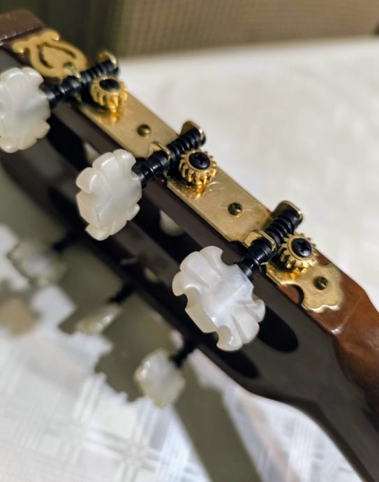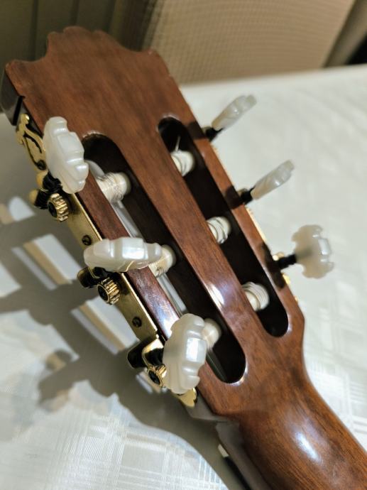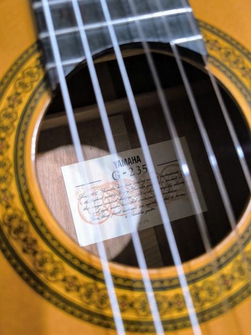 Prodajem očuvanu Yamaha G235 koncertnu klasičnu gitaru za početnike, studente i amatere. Puno drvo, vrat ravan, nove žice, pozlaćene mašinice, japanska preciznost i kvaliteta iz 80ti godina. Ima malo ulegnuće na prednjoj ploči (vidi sliku). Odlučna gitara. Futirana nepromoćiva torba.