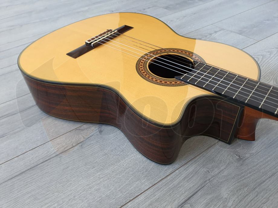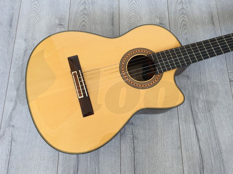 ručno rađena elektro-akustična gitara visoke kvalitete, made in Japan. U cijelosti izrađena od masivnog drva, 2-way preamp s piezo pickupom i mikrofonom.