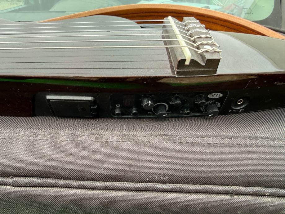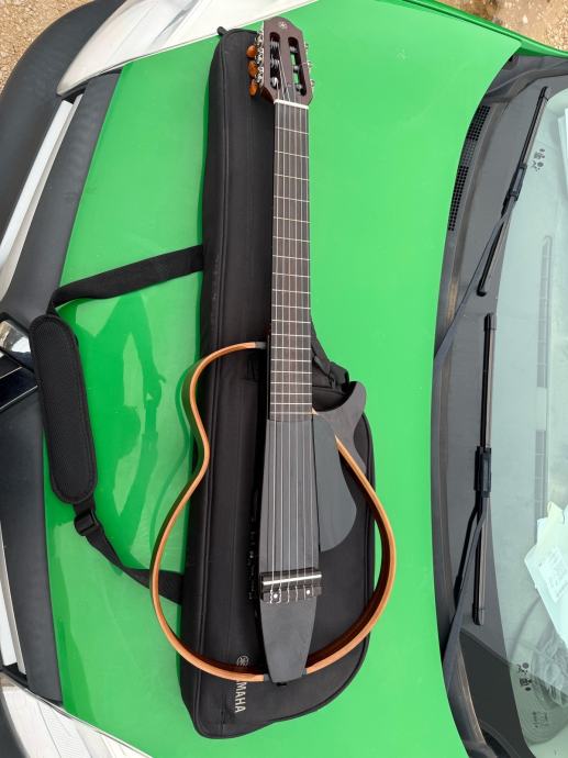 Prodajem silent gitaru s plastičnim žicama. Sve ispravno malo svirana par puta. Ima jednu malu ogrebotinu vidi se na slici. U original torbi. Cijena 550€