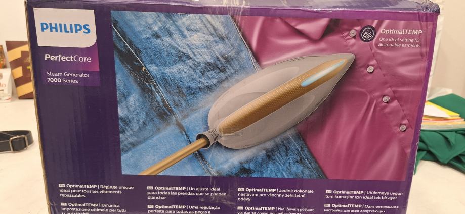Prodajem potpuno novi Philips PerfectCare 7000 parni sustav za glačanje, još uvijek u originalnom pakiranju. Ovaj nagrađivani model s odličnim ocjenama korisnika (4,6/5 na temelju 76 recenzija) omogućava učinkovito i jednostavno glačanje. Idealan je izbor za one koji traže kvalitetno glačalo na paru s najnovijom tehnologijom.