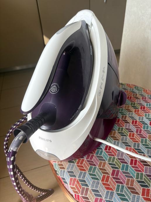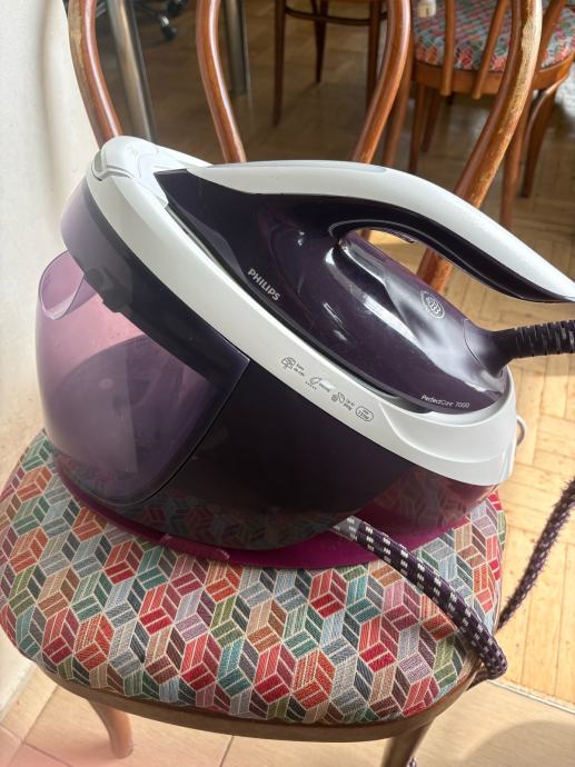 Prodajem peglu sa parnom postajom Philips PerfectCare 7000. Radi se o modelu s odvojenim spremnikom za vodu kapaciteta 1,8 litara, u ljubičasto-bijeloj kombinaciji boja. Pegla je odlično očuvana i savršeno radi. Garancija je istekla, ali je redovno servisirana.