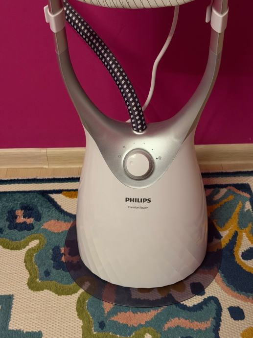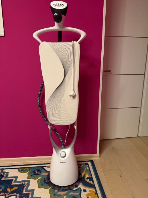 Prodajem Philips Comfort Touch parni glačalo na stalku. Radi se o uspravnom uređaju s integriranim stalkom za odjeću, fleksibilnim crijevom za paru i ručnom jedinicom za parenje. Uređaj je bijele boje s tamnim detaljima. Steamer glačalo može se sigurno upotrebljavati na svim tkaninama i odjeći pogodnima za glačanje. Parna ploča može se sigurno pritisnuti uz svaki odjevni predmet bez rizika do progorijevanja – odlično rješenje za osjetljive tkanine kao što je svila. Uz FlexHead i izuzetno dugački StyleBoard