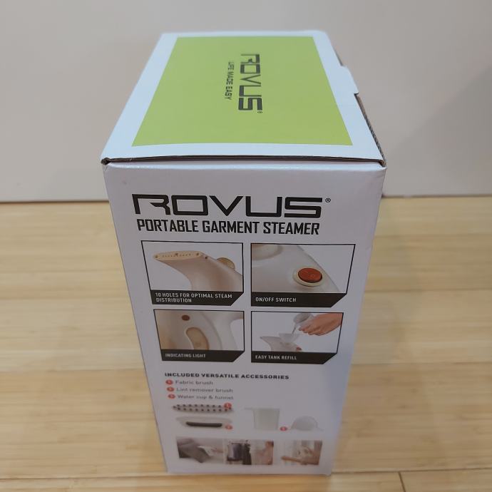 Rovus prenosiva pegla na paru je snažan vertikalni uređaj na paru koji je lagan i kompaktan. Dizajniran je za brzo čišćenje sa parom na različitim tkaninama i površinama i zamjenjuje potrebu za peglom i daskom za peglanje. Podešavanje nivo toplote i pare omogućava dezinfekciju za lako, efikasno i ekološko čišćenje kako bi se osigurala zdrava okolina i lako uklonili svi tvrdokorni nabori.