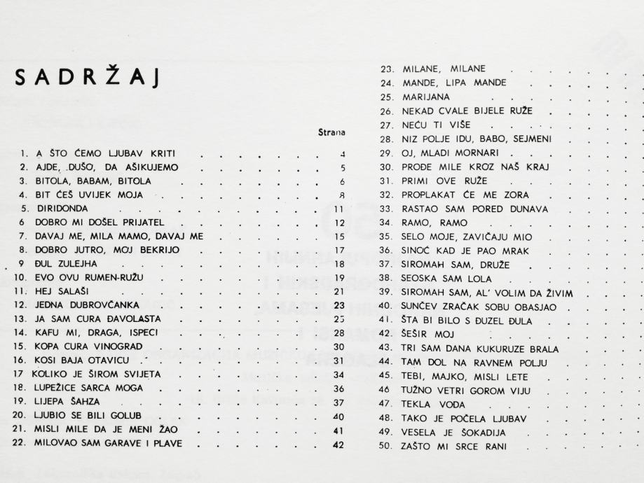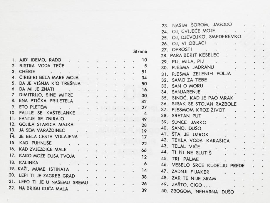 NARODNIH PJESAMA, ROMANSI I ŠLAGERA