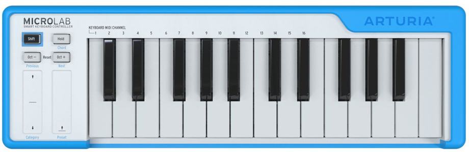 Tražite moćnu i kompaktnu MIDI klavijaturu? Arturia Microlab ima tipke osjetljive na dodir kao i modulacijske "trake" za oblikovanje vašeg zvuka. Uz to možete i besplatno preuzeti Analog Lab lite, kompletni softver za produkciju s preko 600 zvukova klavijatura i sintesajzera. Chord mod omogućuje sviranje cijelih akorda pritiskom na samo jednu tipku. Sjajna značajka je i da se kabel doslovno omota oko klavijature u žlijeb izrađen za njega, pa je manja mogućnost da ga se izgubi. Arturia Microlab je savršena klavijatura za kreiranje glazbe na putu ili gdje god da se nađete. Ovo je verzija u plavoj boji.