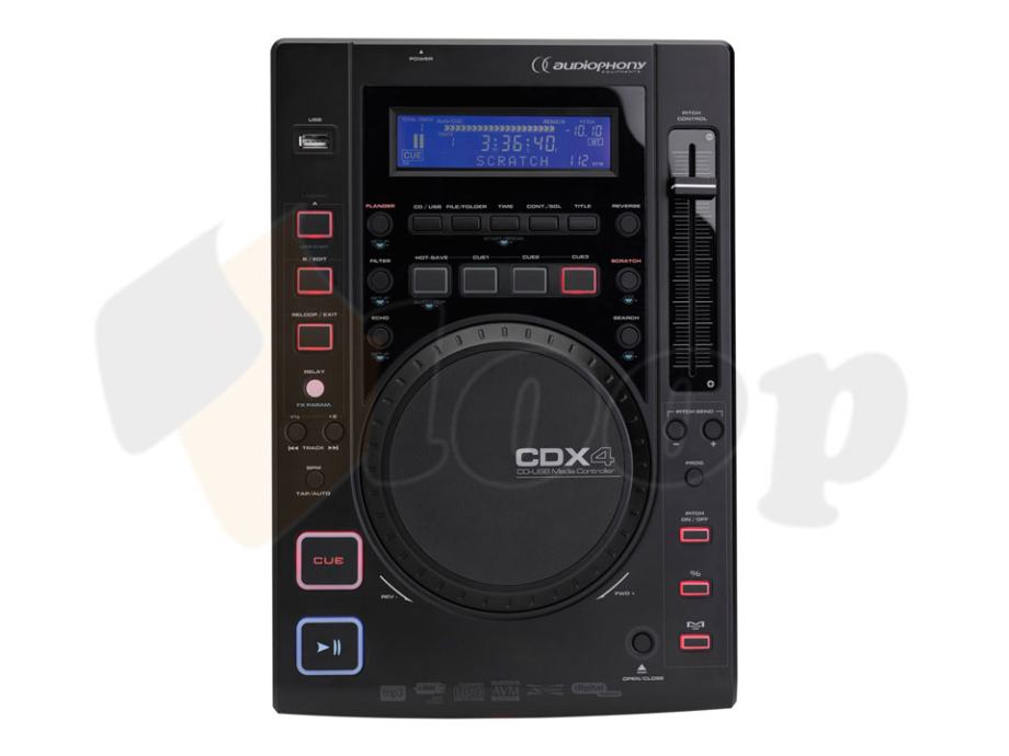 Audiophony CDX4 je plejer namijenjen DJ-ima. Čita MP3 formate s priključenih USB uređaja za pohranjivanje, a odlikuju ga sve značajke koje bi očekivali od profesionalnog cd plejera: funkcije auto-loop, auto-cue i različiti efekti, podesivi pitch, anti vibration sustav, jog wheel kotačić osjetljiv na dodir itd. Na vrlo preglednom LCD zaslonu možete pročitati imena pjesama i izvođača, a digitalni i analogni priključci pobrinut će se za kvalitetno spajanje na različite druge uređaje ili razglase.