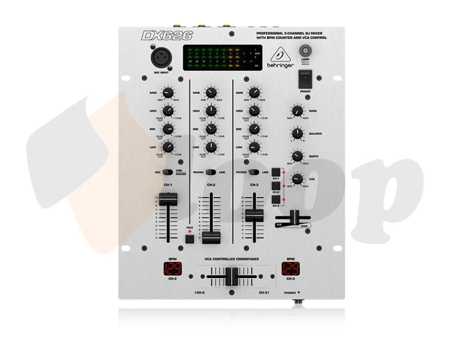 Pro Mixer DX626 je profesionalni 3-kanali DJ mikser visoke kvalitete za integriranim BPM (beat-po-minuti) brojačem i utjelovljuje dokazani 3-kanalni dizajn obožavan od strane DJ-eve iz cijelog svijeta - početnika i profesionalaca. Super glatki "Ultraglide" sklizni potenciometri garantiraju dug životni vijek (500,000 pomjeranja garantirano) te izuzetno ugodan rad.