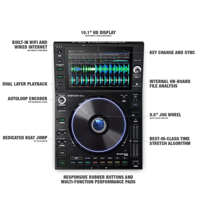 Denon SC 6000 Prime Stolni DJ player. Neke od glavnih karakteristika Denon SC 6000 Prime plejera su HD ekran, 3x USB priključka, SD, inetgrirani HDD, Harmonic Mixing koji olakšava stvaranje ultra DJ setova, a zahvaljujući funkciji reprodukcije s dva deka Denon SC-6000 možeš učinkovito koristiti kao dva deka u jednom. Još neke od karakteristika su: