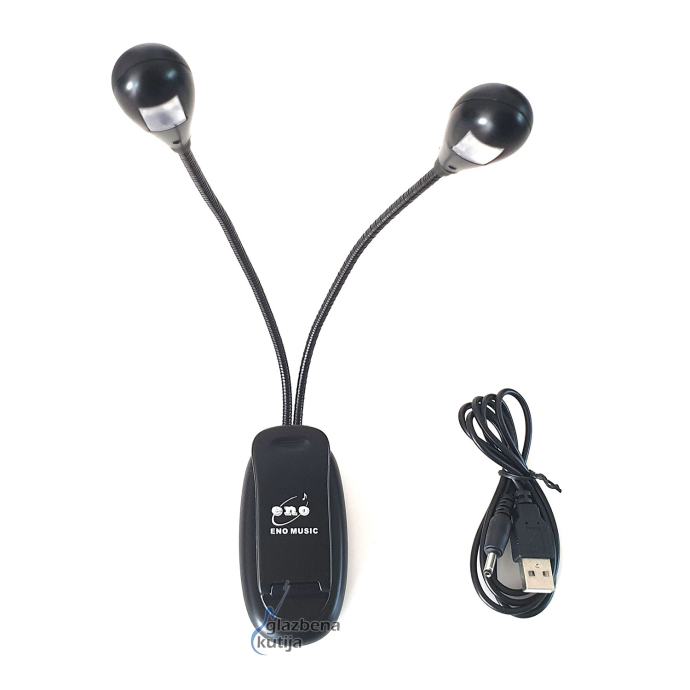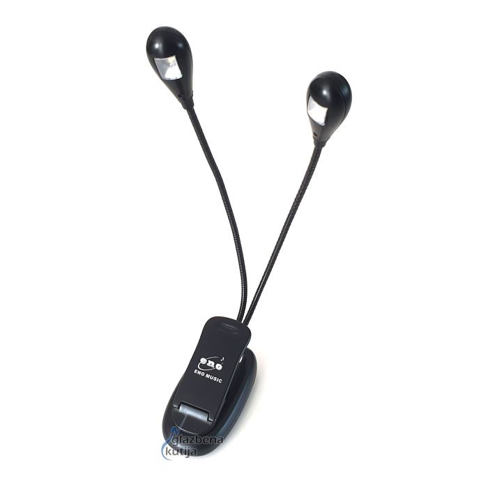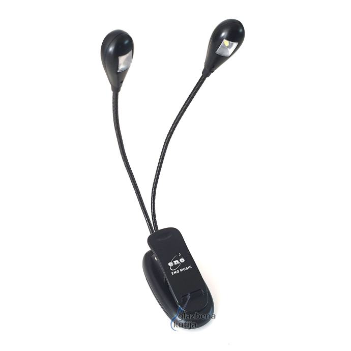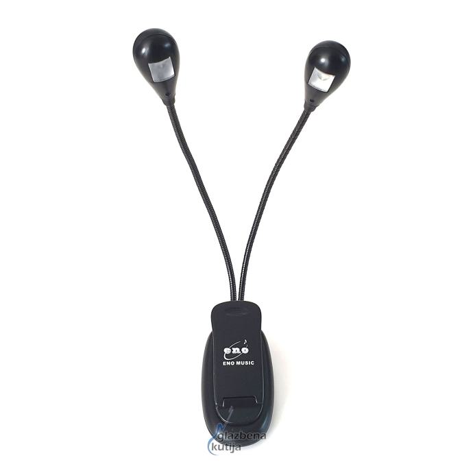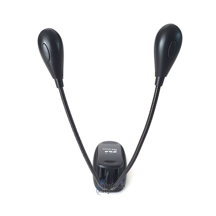 Baterijska mini lampa s dvije led diode niske potrošnje. Pričvršćuje se na notni stalak pomoću kvačice, a može se koristiti i kao samostojeća lampa. Dolazi s USB kablom.