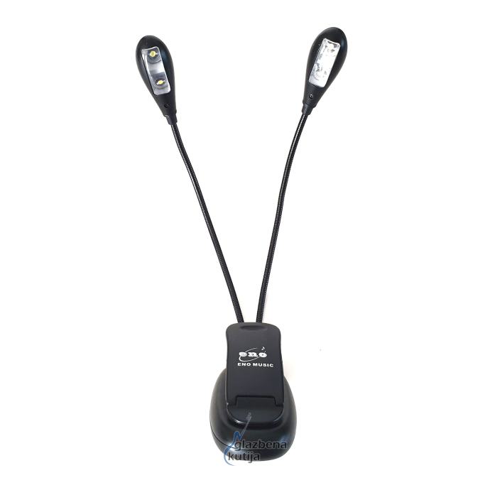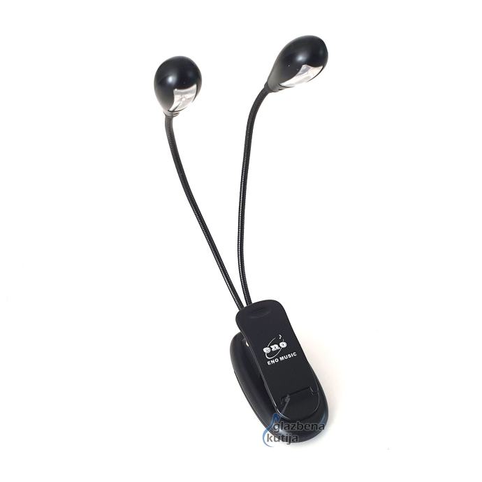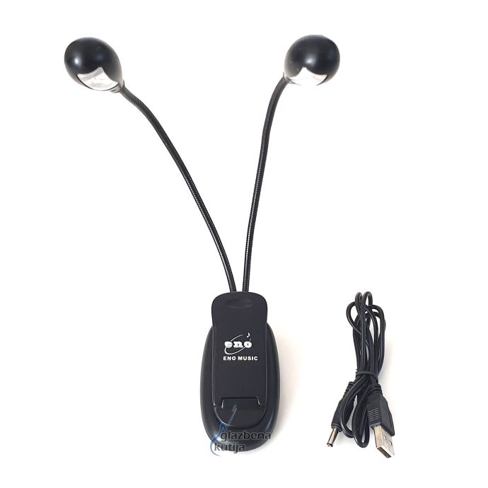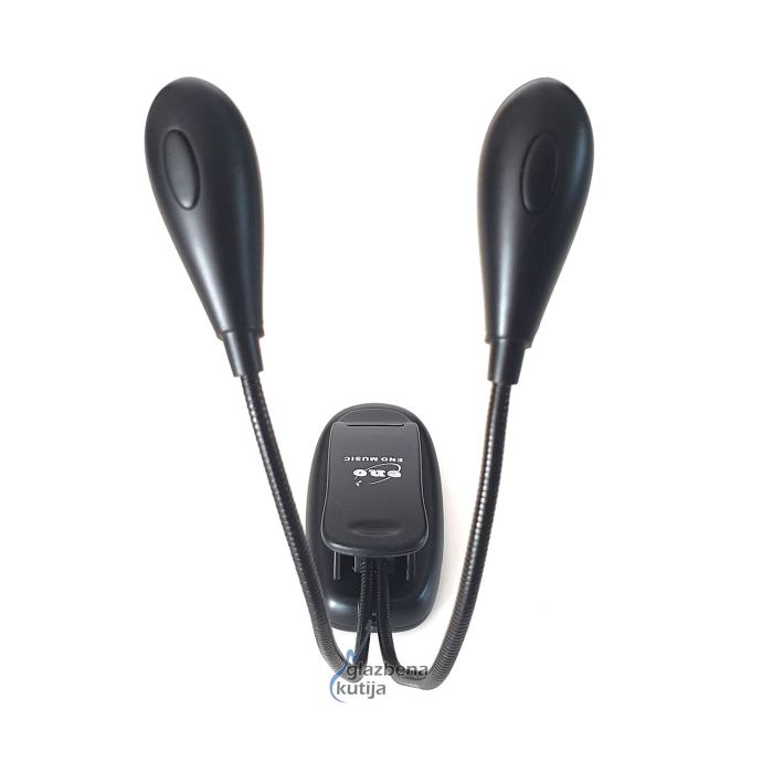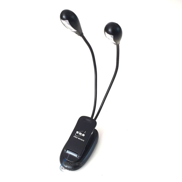 Baterijska mini lampa s četiri led diode niske potrošnje. Pričvršćuje se na notni stalak pomoću kvačice, a može se koristiti i kao samostojeća lampa. Dolazi s USB kablom.