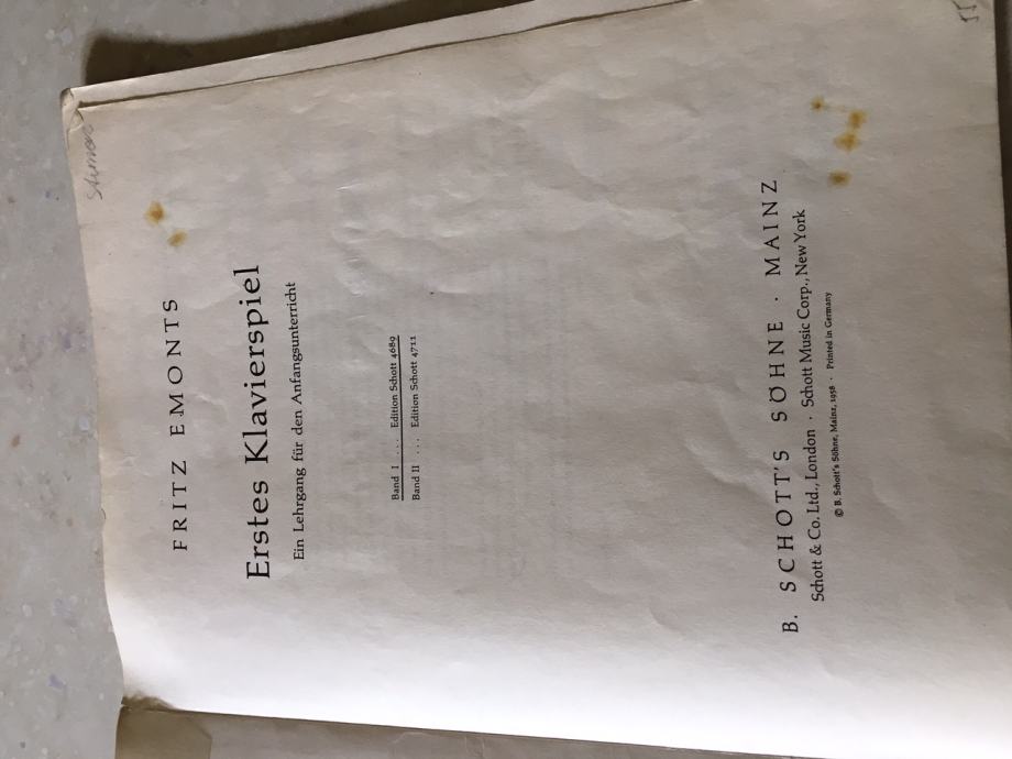 knjiga za naučit svirat klavir od Fritz Emonts : Erstes Klavierspiel, ein Lehrgang, Band 1, Edition Schott 4689, Band 2, Edition Schott 4711, 48 stranica sa notama, veoma dobro očuvana