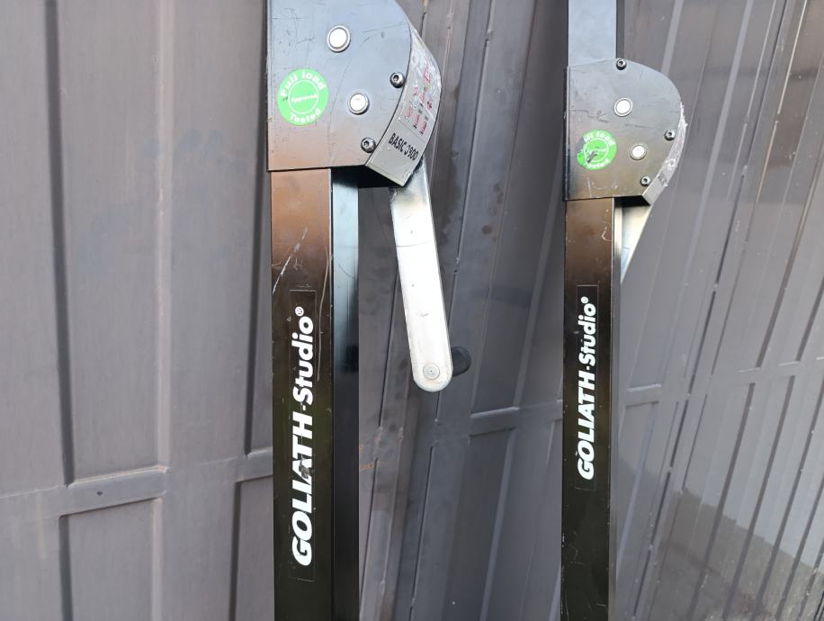 Prodajem vrhunske stative za rasvjetu ili razglas tvrtke Goliath. Prijenos preko zubi što je puno sigurnije od sajli, samozaključavanući.