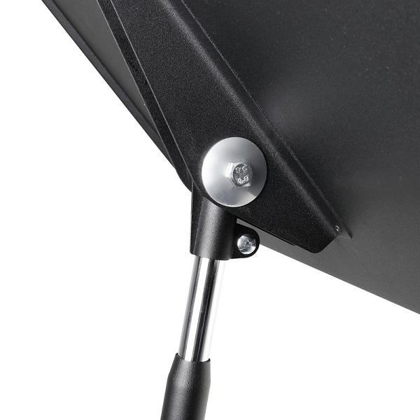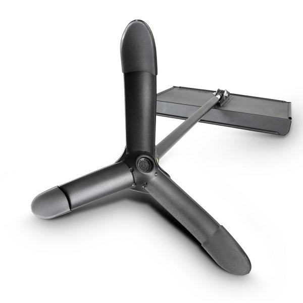 GNSORC 1 is a rugged orchestra-style music stand designed for ultimate handling convenience. Height and support tilt adjustment rely on frictional force and do not require any set screws. All frictive parts are engineered for zero wear. The stand of powder coated steel features a
