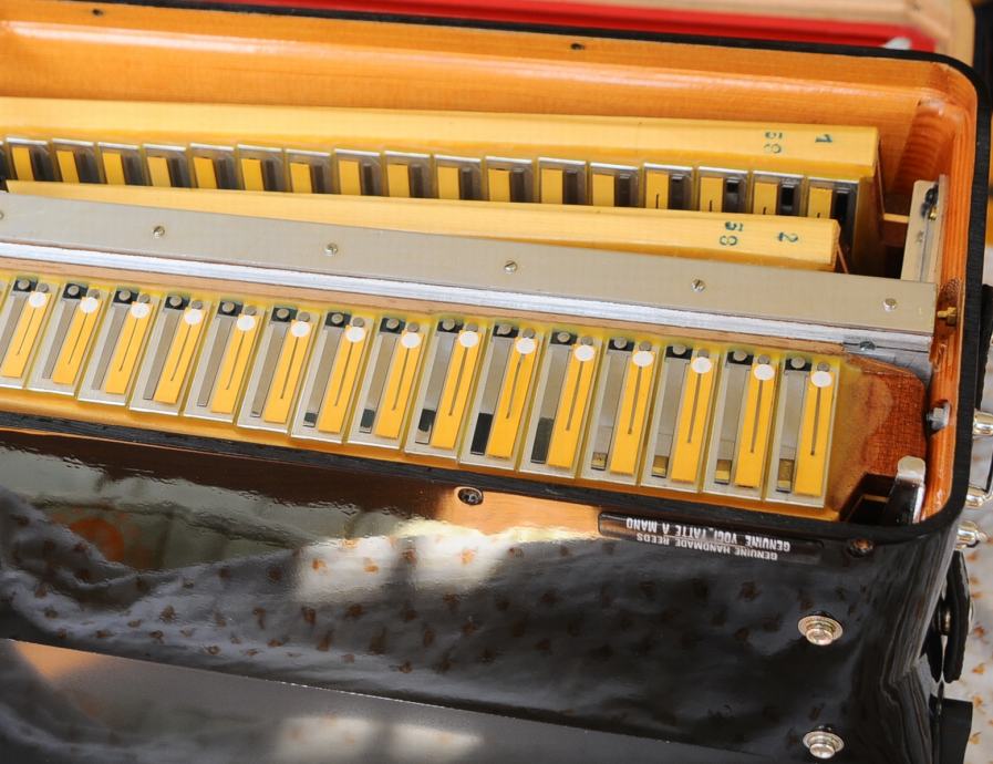Guerrini champion president vrhunska originalna dugmetara kao nova, 8500E. Tonski i tehnički vrh, kućna upotreba. Aluminijski dekl, kofer, sve besprijekorno. Slike sve govore. N.Zagreb. 091-730-2005