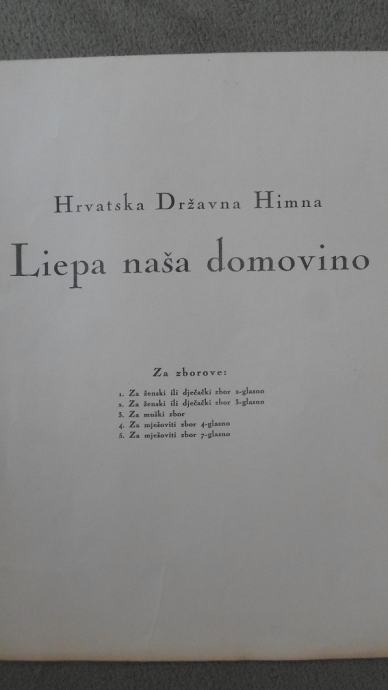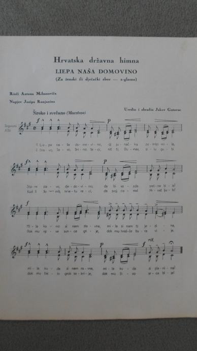 Prodajem uglazbjlenu Hrvatsku Državnu Himnu "Lijepa naša domovino,riječi Antuna Mihanovoća,napjev Josipa Runjanina,uredio i obradio