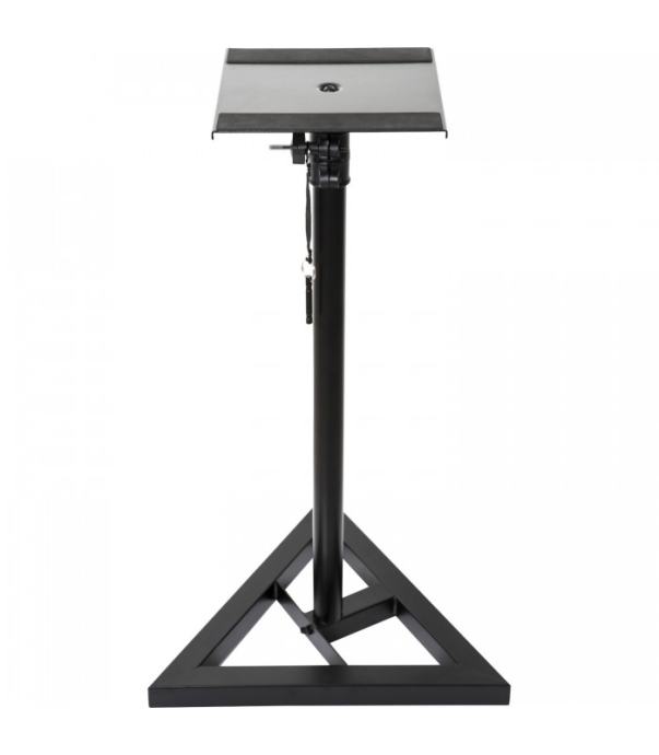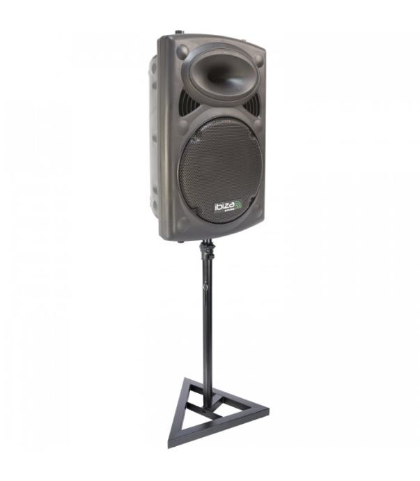 Ibiza SST02 stalak za monitor. Svestrano postolje opremljeno četvrtastom pločom na vrhu za laganu kutiju zvučnika, video projektor, zvučnik za monitor, jedinicu za svjetlosne efekte i još mnogo toga. Baza je trokutasta i metalna, a stalak je podesive visine od 75 do 130 cm. Ibiza SST02 stalak isporučuje se s gumenim nožicama i šiljcima podesivim po visini kako bi se spriječile vibracije od poda i kompenzirale neravne površine.