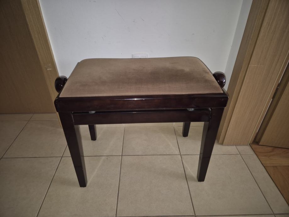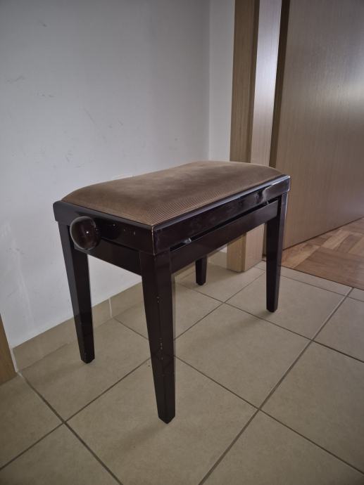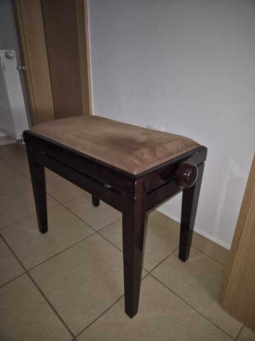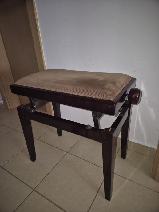 Prodajem podesivu drvenu klavirsku stolicu s mekanim tapeciranim sjedalom.