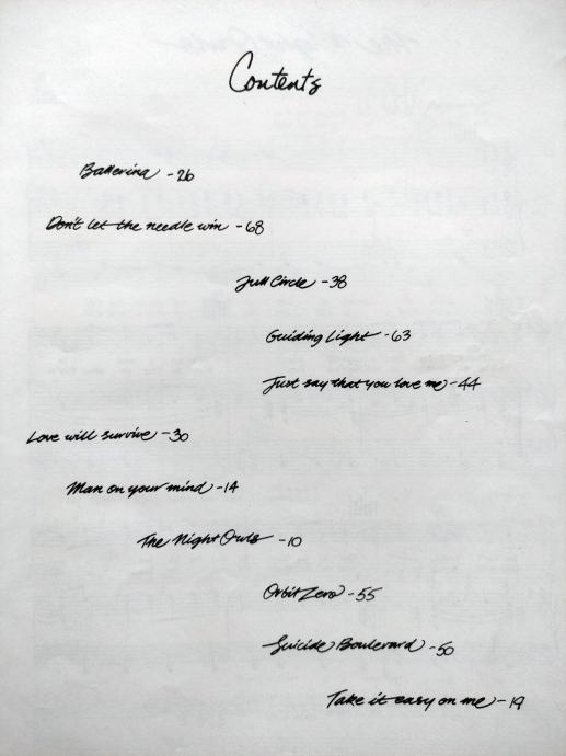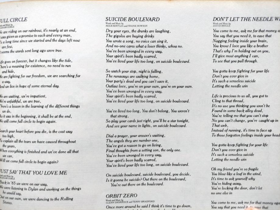 Orbit Zero; Suicide Boulevard; Take It Easy on Me.