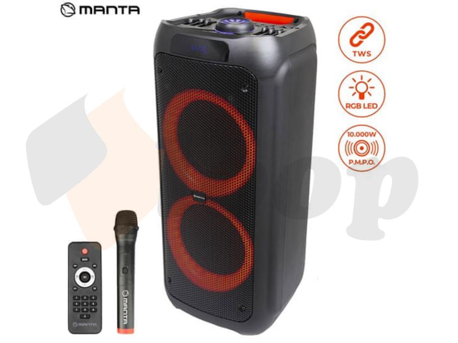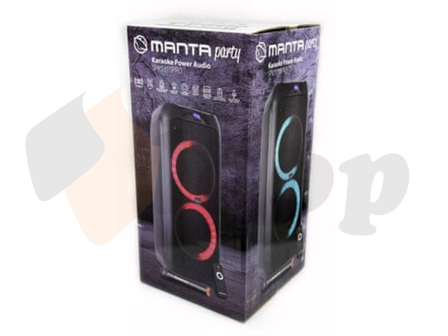 Karaoke zvučnik MANTA SPK5310 PRO pravi je multimedijski centar, jer ima ugrađenu brzu BLUETOOTH 5.0 vezu za povezivanje s vašim pametnim telefonom ili tabletom, na njega možete spojiti gitaru, puštati glazbu s USB uređaja, memorijskih kartica ili izravno putem AUX-a ulaz (MP3 uređaj, prijenosno računalo). Ugrađena snažna punjiva baterija, daljinski upravljač i uključeni bežični mikrofon osigurat će nezaboravnu audio avanturu