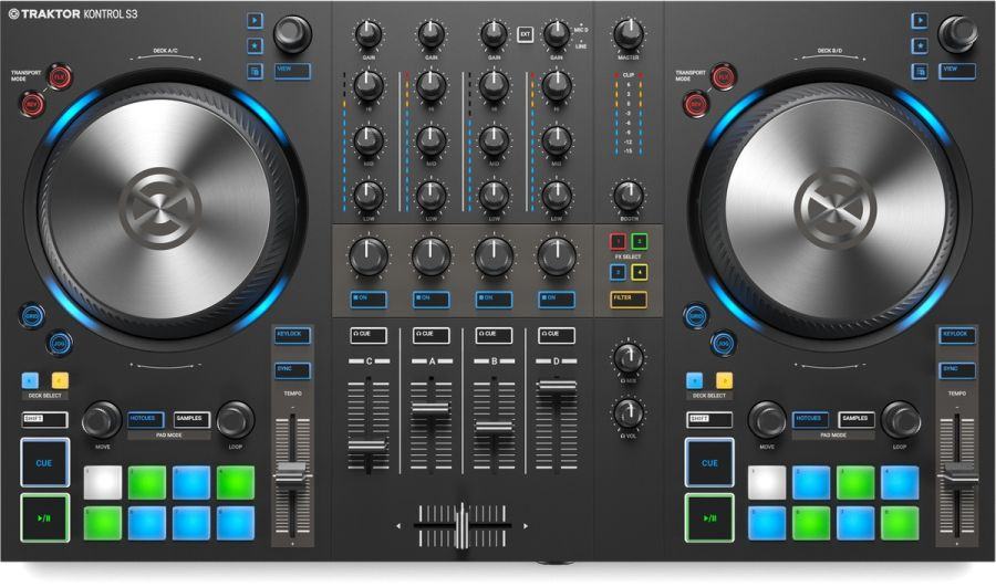 Native Instruments Traktor Kontrol S3 najnoviji je njihov DJ kontroler s profesionalnim značajkama po iznimno pristupačnoj cijeni. Namijenjen je hobistima i DJ-ima u usponu te im omogućuje da svoje vještine podignu na višu razinu. To je 4-kanalni "plug and play" kontroler koji sadrži XLR i booth priključke kao i brzu integraciju sa softverima Traktor DJ 2 i Traktor Pro 3 koji se isporučuju zajedno s uređajem. Krase ga 2 osvijetljena Jog Wheel kotačića, dugački pitch klizni potenciometri, RGB osvijetljeni padovi, 4-kanalni mixer za FX efekte. Kontrol S3 je ujedno i audio sučelje (44.1/48 kHz, 24 bita) s oba priključka za slušalice, XLR, RCA, i TRS Booth Out izlaznim priključcima i Combo XLR Mic in i RCA Aux in ulaznim priključcima. Zakoračite odmah u svijet profesionalnog DJ-inga!