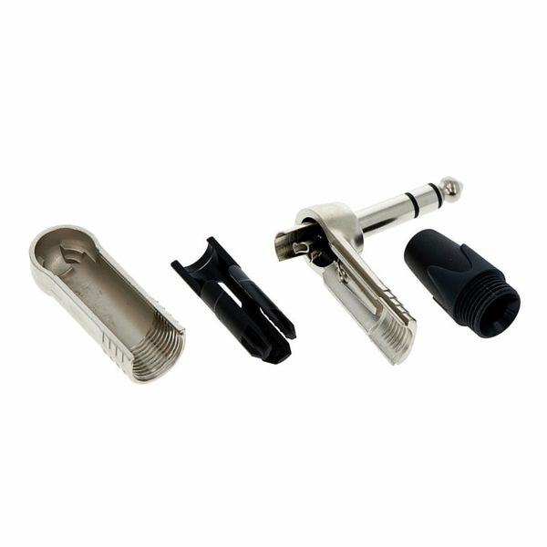 3 pole right-angle 1/4" professional phone plug, nickel contacts, nickel shell