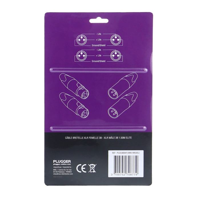 - Twin Cable 3-pin XLR Female - XLR M 3-pin, length 0.60m PLUGGER