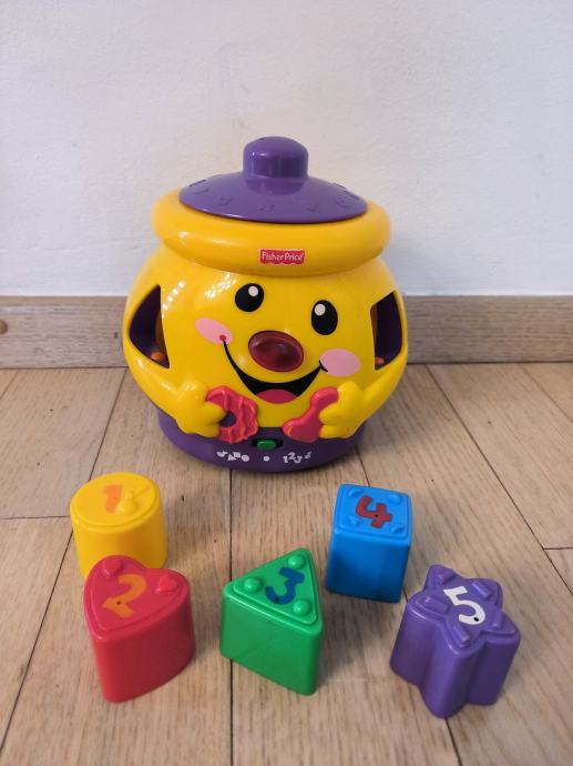 Na prodaju lončić sveznalica, potpuno ispravan s novim baterijama. Pjesmice i brojevi na HRVATSKOM jeziku. Koristilo jedno dijete. Svaki put kada dijete ubaci odgovarajući oblik u otvor - lončić svira zabavnu melodiju i izgovara broj ili oblik. Na taj način dijete uči brojeve, pjesmice, razlikovati i sortirati oblike. Stavljanje ruke u lončić aktivira muziku; izvlačenje ruke prekid muzike.