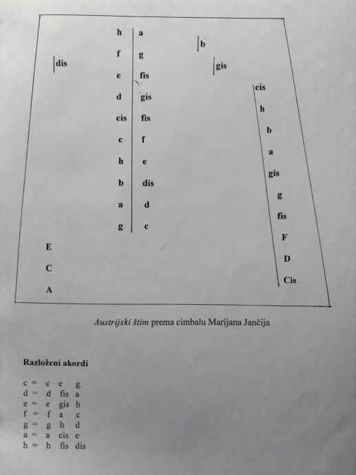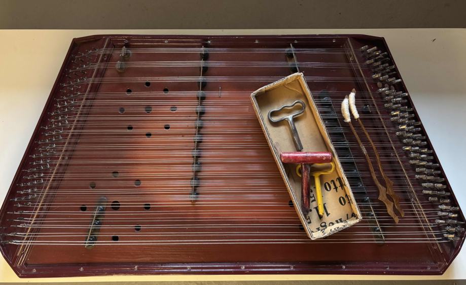 Novi cimbal, građen po uzoru na cimbal bjelovarskog folkloraša Marijana Jančija. Uz glazbalo idu ključevi za ugađanje.