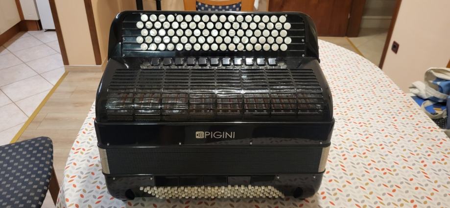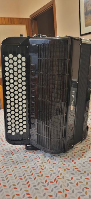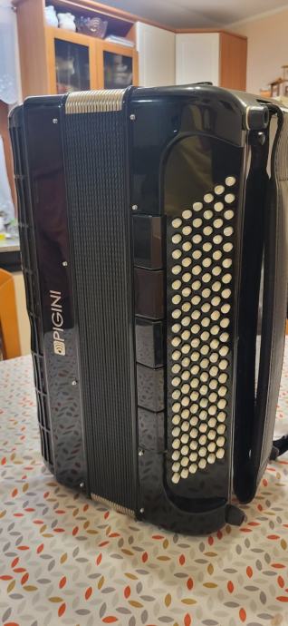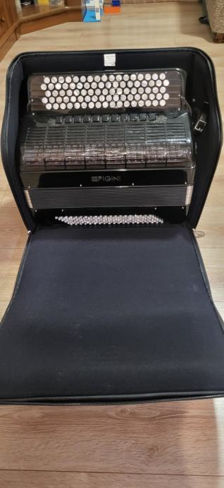 Prodajem harmoniku dugmetaru Pigini, C grif, 120 basova, 2019. godište, 1. vlasnik, malo korištena, kao nova, uz nju ide kofer i torba.