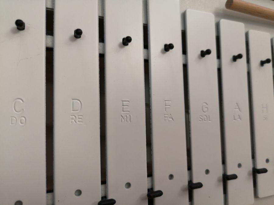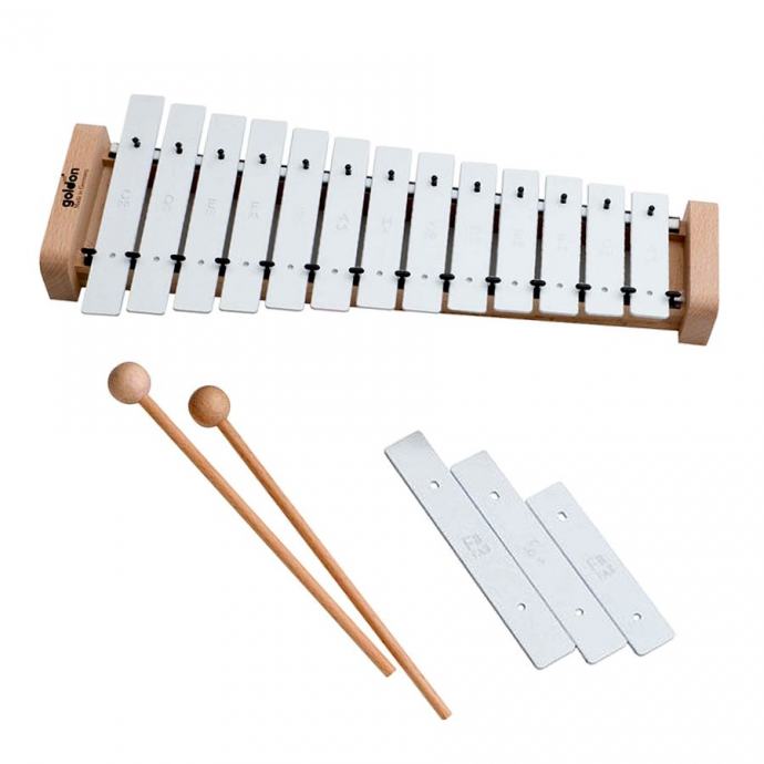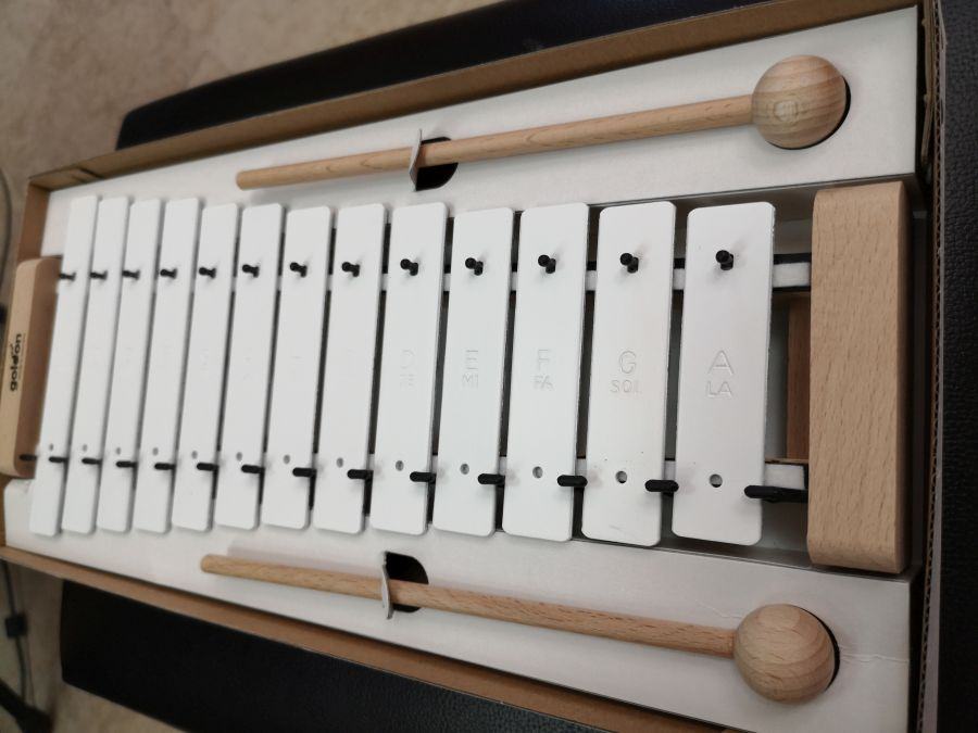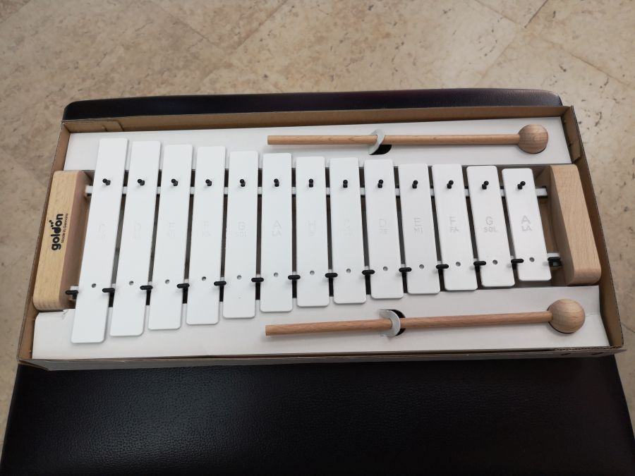 Alto GLockenspiel; 20 x 2mm fine-tuned steel bars, 13+3 white sound plates, C2-A3 tone range, with F#2/Bb2 and F#3, wooden beater, beech wood frame.