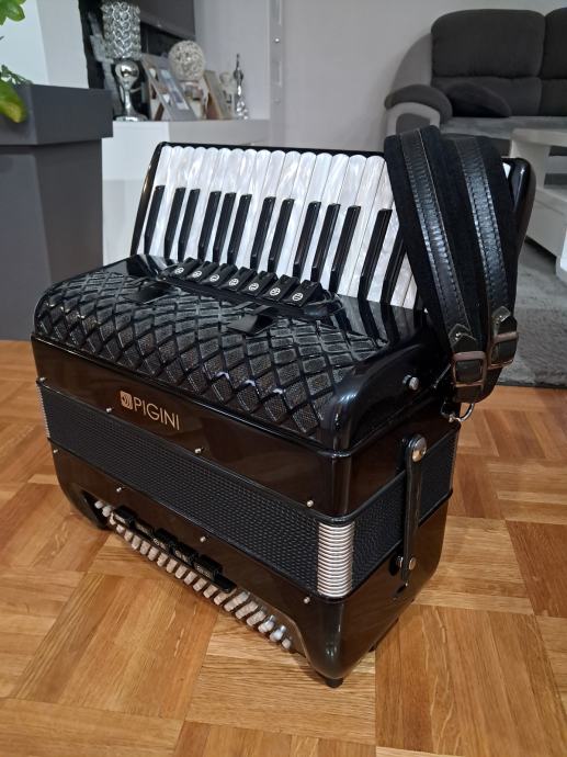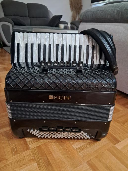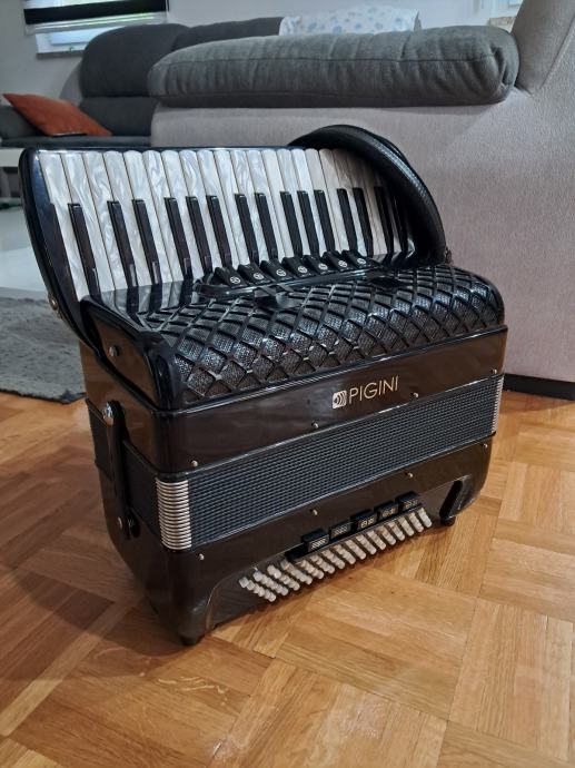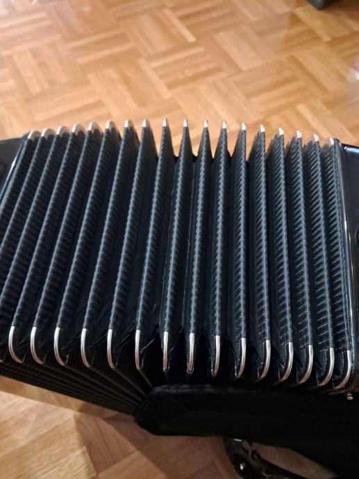 Prodajem navedenu harmoniku, u savršenom stanju i potpuno isparavna. Harmonika ima 7 registara u desnoj ruci i u lijvoj ruci ima 5 registara + bariton basovi. Harmonika je troglasna. Razlog prodaje harmonike je zbog kupnje druge