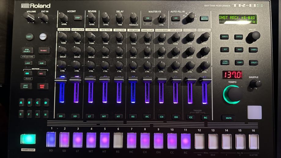 Roland TR-8S je napredna ritam mašine sa ugrađenim zvukovima od 808, 909, 707, 727 i 606 ritam mašina i efektima za modulaciju. Moguće stavljanje svojih sample-ova u sam uređaj putem SD kartice. Ugrađeni audio i MIDI interface. Uređaj je kupljen 01/2022 u Euromusic Agency, isključivo korišteno u kućnom studiju. Nema nikakvih oštečenja.