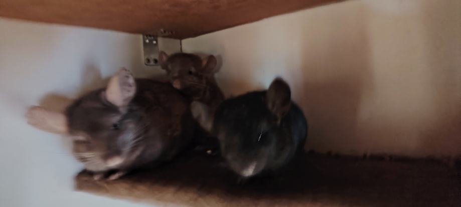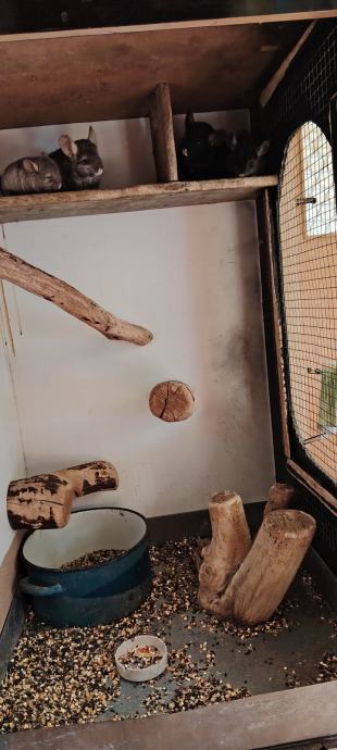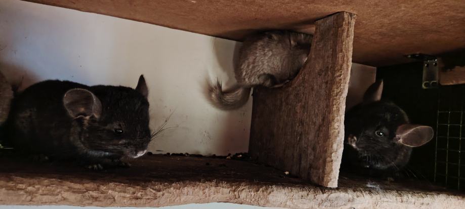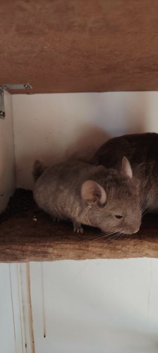 Prodajem mlade činčile okoćene krajem 11. 2025. Crno je ženka a sivo muškić. Moguća je prodaja i odraslih i kompletno s kavezom a odrasli su sivo ženka crno mužjak. Cijena 80/komad a kavez 60. Dimenzija kaveza je V=120, Š=74, D72 ima 5 kotačića tako da se može pregurati