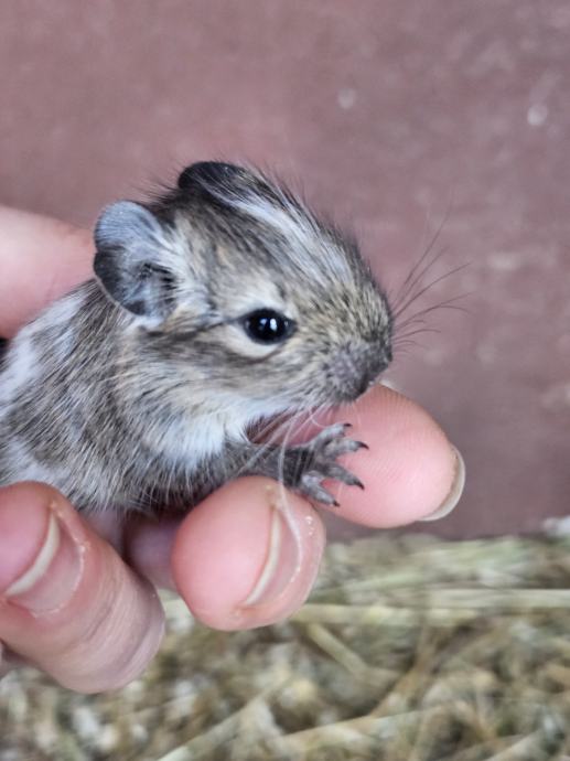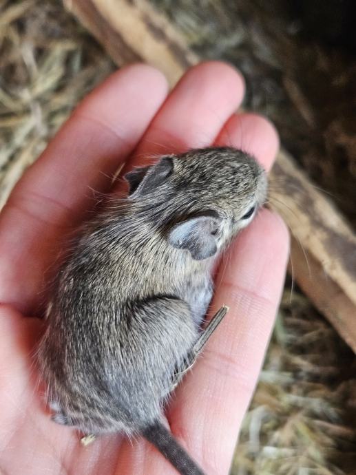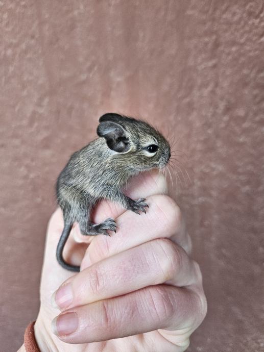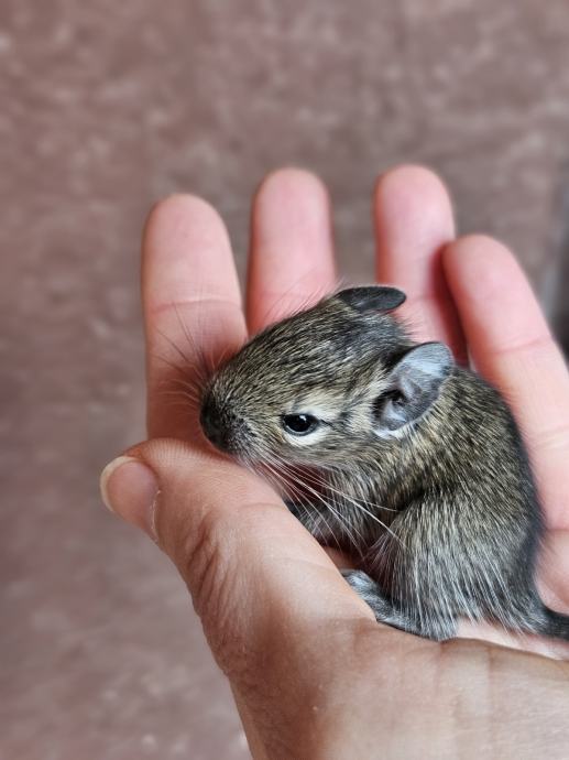 Prodajem mlade degue (Octodon degus), sive boje s karakterističnim svjetlijim trbuhom. Radi se o društvenim glodavcima koji su navikli na rukovanje i kontakt s ljudima. Mladi su, živahni i radoznali.