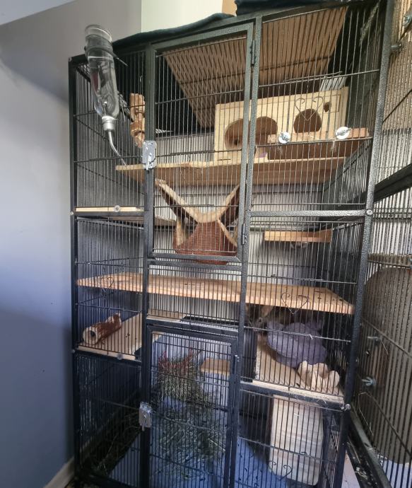 Poklanjamo i kavez (dimenzija: širina 75 cm, visina 135 cm, dubina 46 cm), potpuno opremljen sa: