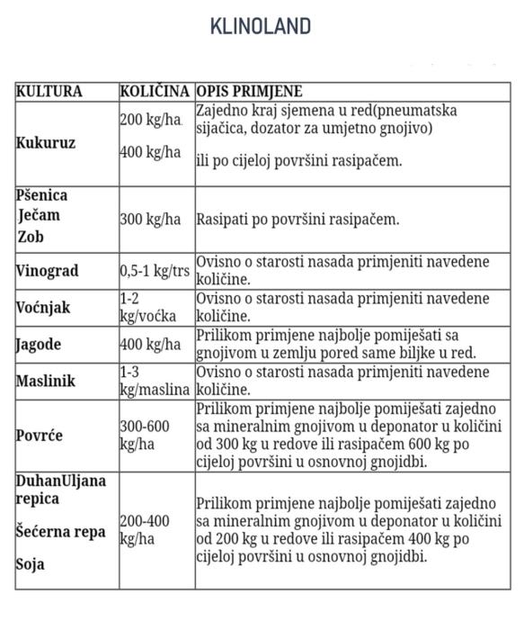 Klinoland, za razliku od ureje, nije agresivan prema sjemenu. Naprotiv, sjeme bi trebalo biti u kontaktu s klinolandom pri sadnji, radi veće iskoristivosti.