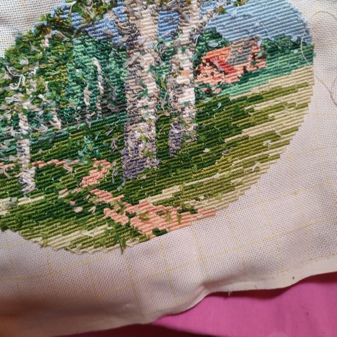 Ostali su još i ostaci original konca od navedenih goblena, nabavljeni iz Njemačke, a radovi su radjeni vrlo pedantno, bez da se vide prijelazi iz kocke u kocku. Rad se vidi posebice na Brezama, odozada, jer iste nisu uramljene. Zadnja slika u prilogu.